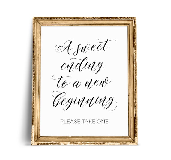 A Sweet Ending to a New Beginning 8×10 Favors Sign | Zazzle