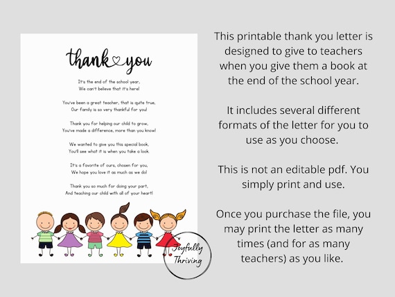 End of the Year Teacher Appreciation Gift Thank You Gift Printable