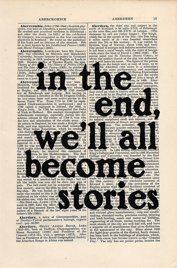 In the End, We’ll All Become Stories Quote Print on an Antique