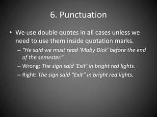 With dialogue, punctuation goes inside the quotation marks ppt