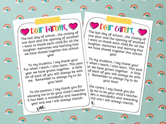 Thank You Letter From Teachers to Parents and Students, Teacher